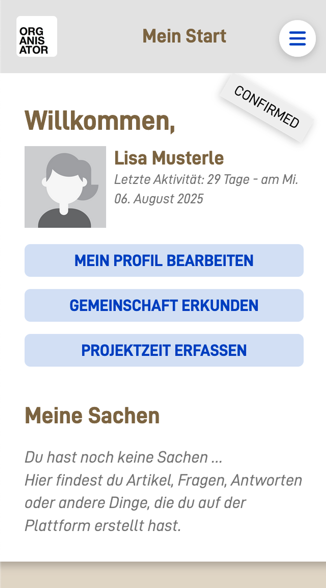 Grundsätzlich kann jede interessierte Person die Zeiterfassung auf Projekte testen und für sich selbst oder eine Gruppe einsetzen. Es braucht dazu lediglich ein eingerichtetes Profil auf der Plattform. Wenn man sich dann anmeldet, gelangt man zur eigenen Profilseite und findet dort die Taste, um neue Arbeitszeiten zu erfassen.